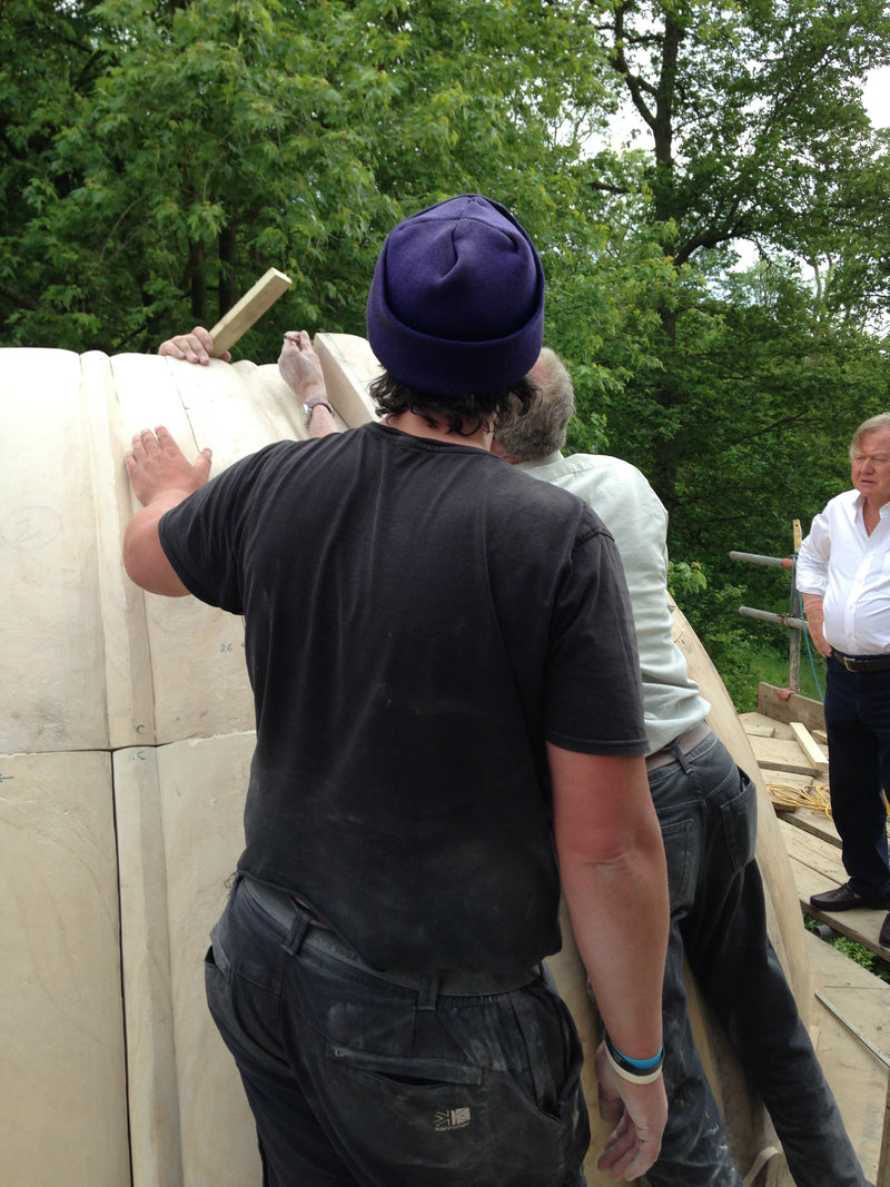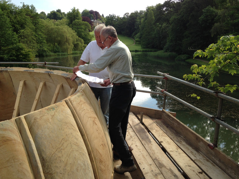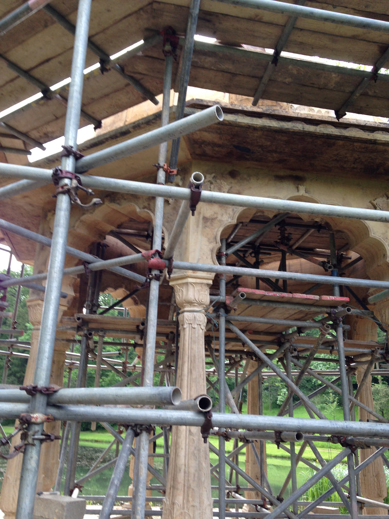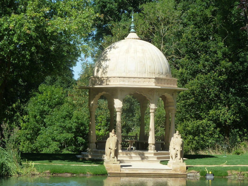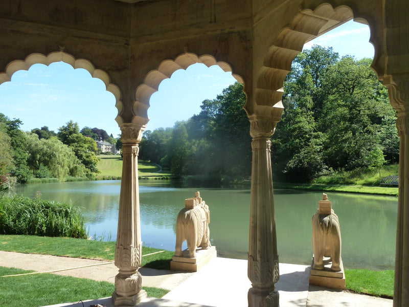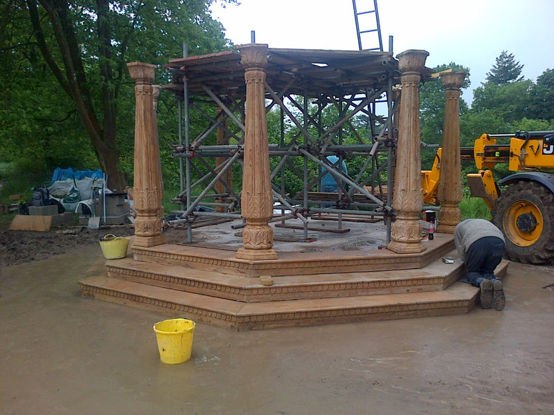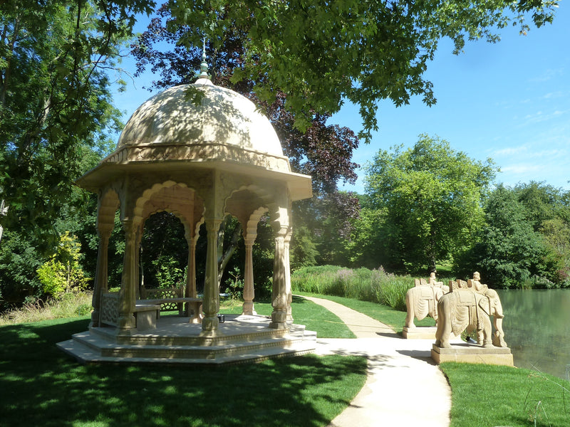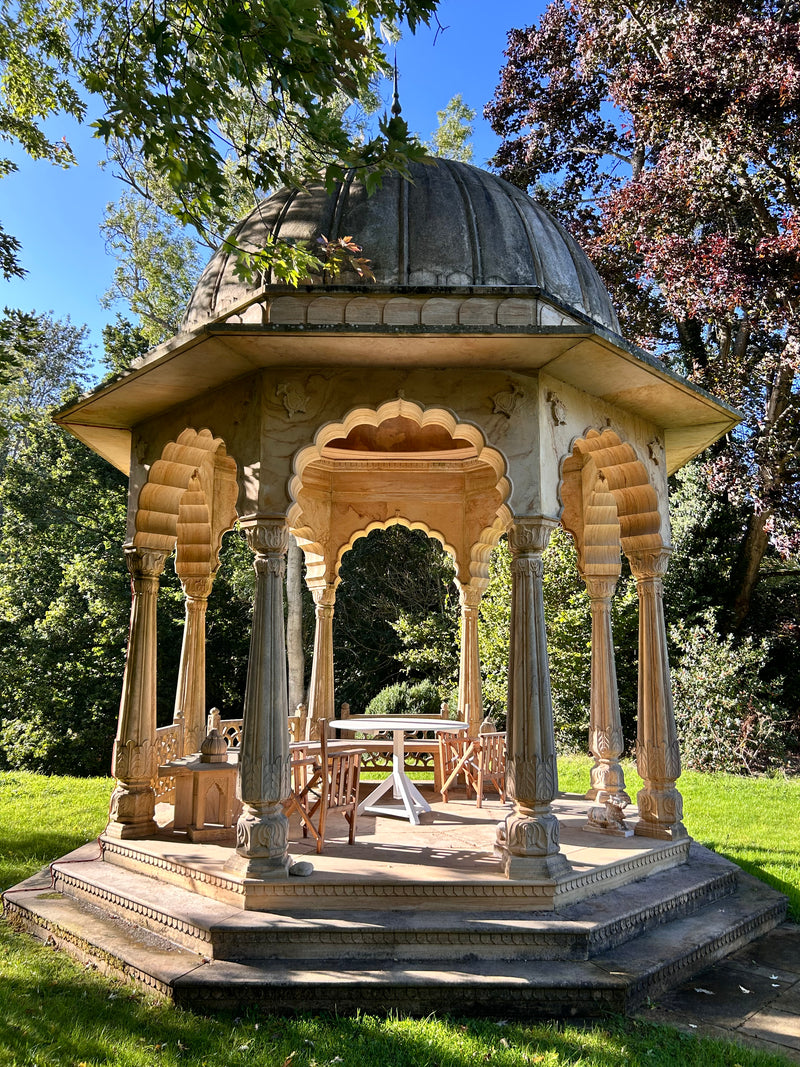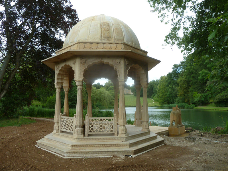 We had the honor of crafting an exquisite handcrafted pavilion in yellow stone for Sir Lord Bamford at his Daylesford House estate in London.